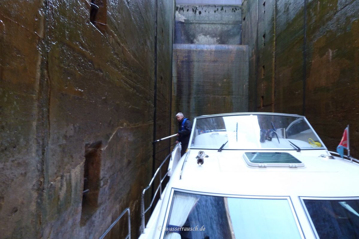 Then the gate is closed again and it goes down. What an impressive lock! The total drop is about 30.5 m, 60 feet in the upper chamber and about 40 in the lower, depending on the tide.
