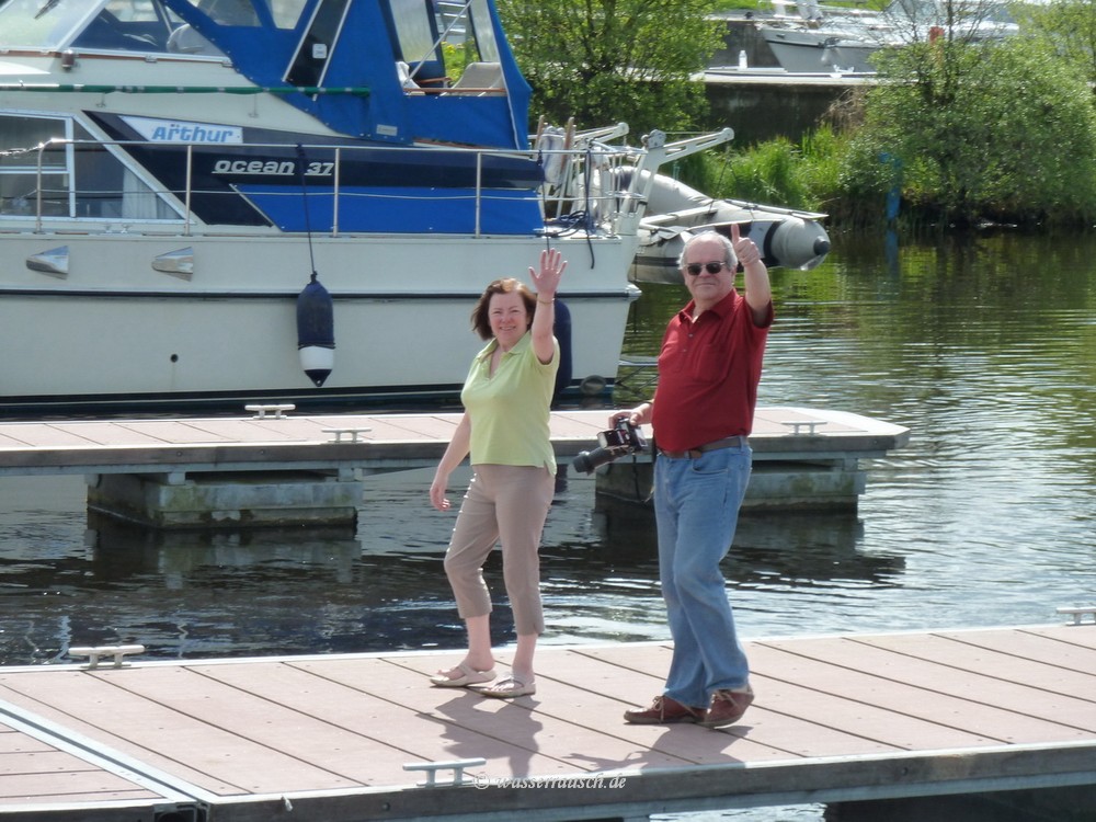 We arrive with sun in the afternoon at Banagher and board Silver Spray 36L of Silverline. At 6 pm Paul and Mary on ‘Arthur’ moor at the jetty. They invite us to a delicious seafood dinner onboard. Paul is fine-tuning the preparations for the CIC to Ballinasloe and we are invited to give him our opinions on the wine he has to choose for Easter. It is late when we leave ‘Arthur’; the coming full moon must have something to do with that.