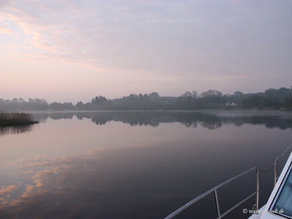 We start early and drive slowly around on the glassy Inner Lakes. We take on water at Killinure and moor at Coosan Point for a break.