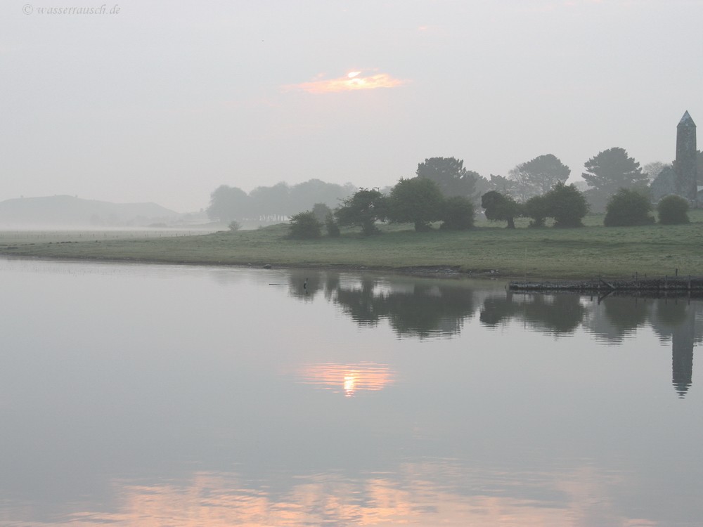 A cuckoo calls while the sun is breaking through a low layer of clouds. Morning fog covers the scenery and coats the Callows with a magic light. The fishes are busy and the birds too.
