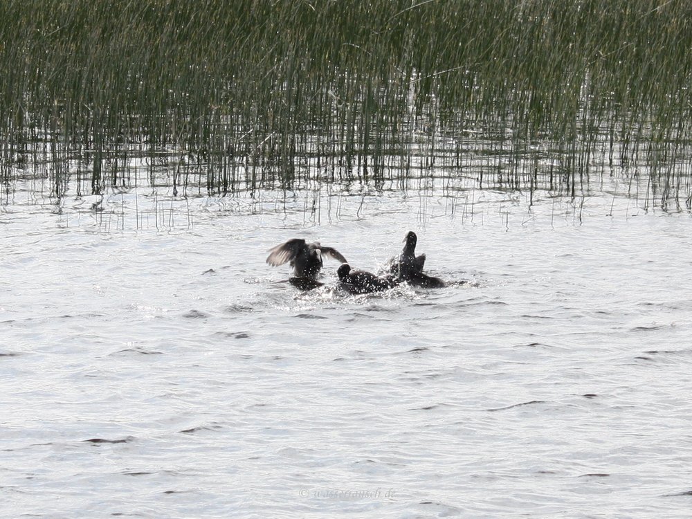 We had seen a territorial fight of coots above Lanesborough but that one was finished after a couple of minutes. This one today at Terryglass is more exiting; it is a boxing match Vladimir Klichko style.