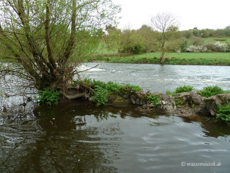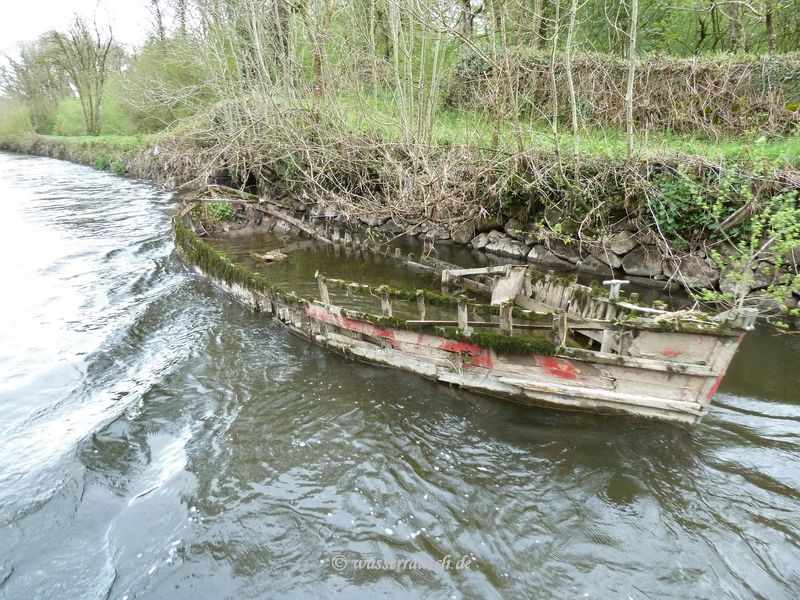 We are back on the river with a strong current at this point but the river slows down after a short part. We pass a wreck of a wooden boat. We are also slowing down and enjoy the beautiful river valley to Balligrane weir and lock.