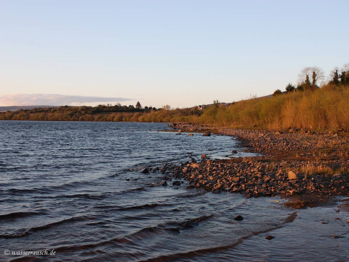 We cross again the deep lake in freshening wind. Willi measures with our digital anemometer at Cleighran More Jetty 29 km/h (strong F4). But as suddenly as the wind has increased it calms down again and we enjoy a nice sunset.