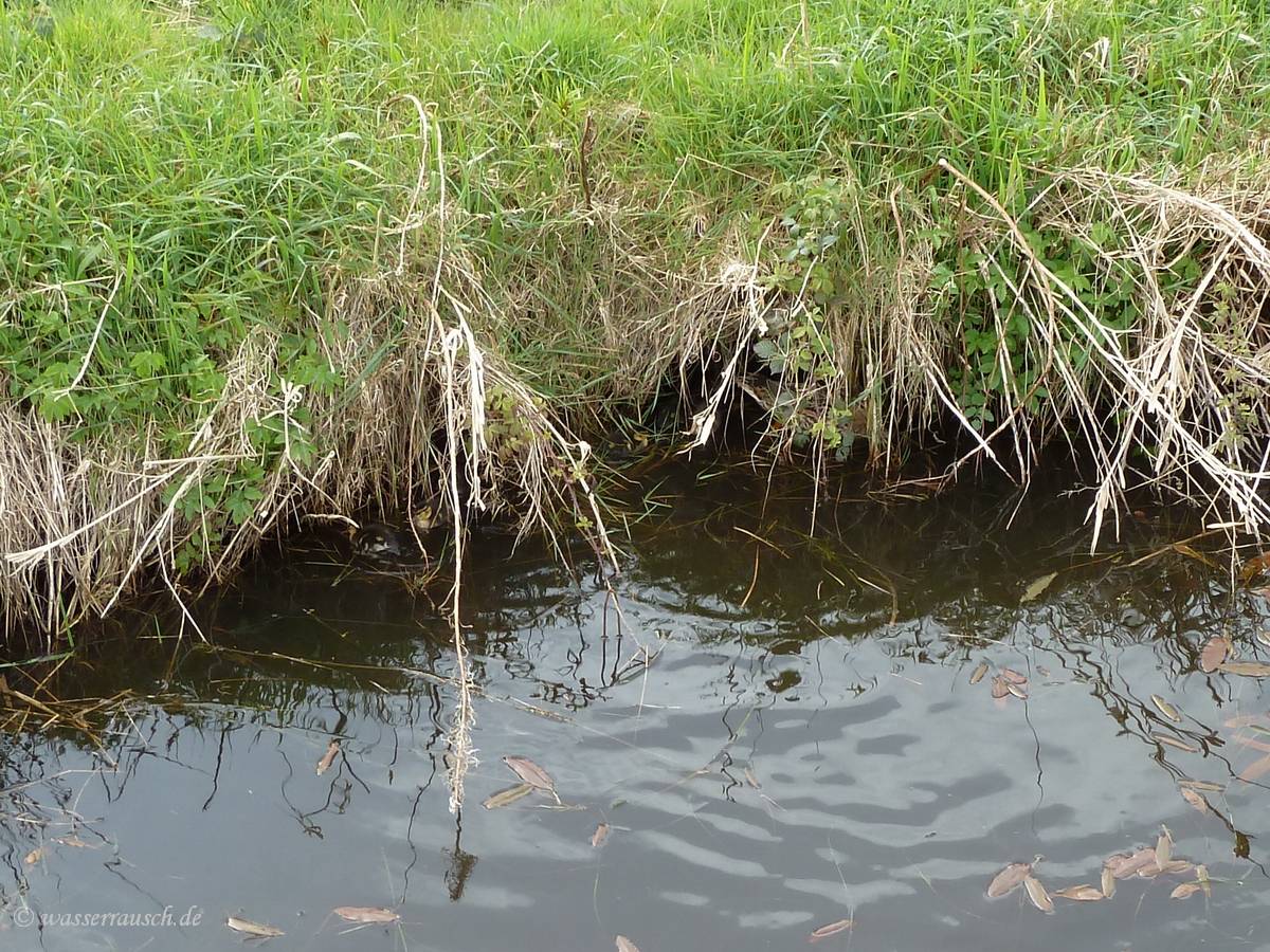 Behind the footbridge we spot a duck with her ducklings. As we come closer she hides her offspring under the bank.